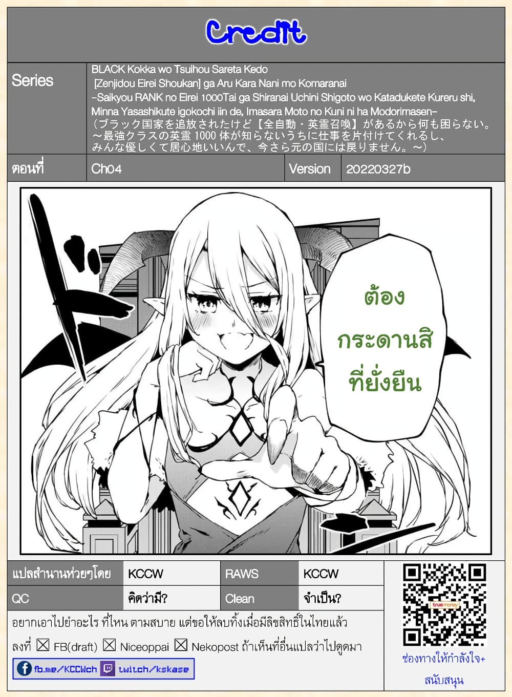 BLACK Kokka wo Tsuihou Sareta Kedo [Zenjidou Eirei Shoukan] ga Aru Kara Nani mo Komaranai - ตอนที่ 4
